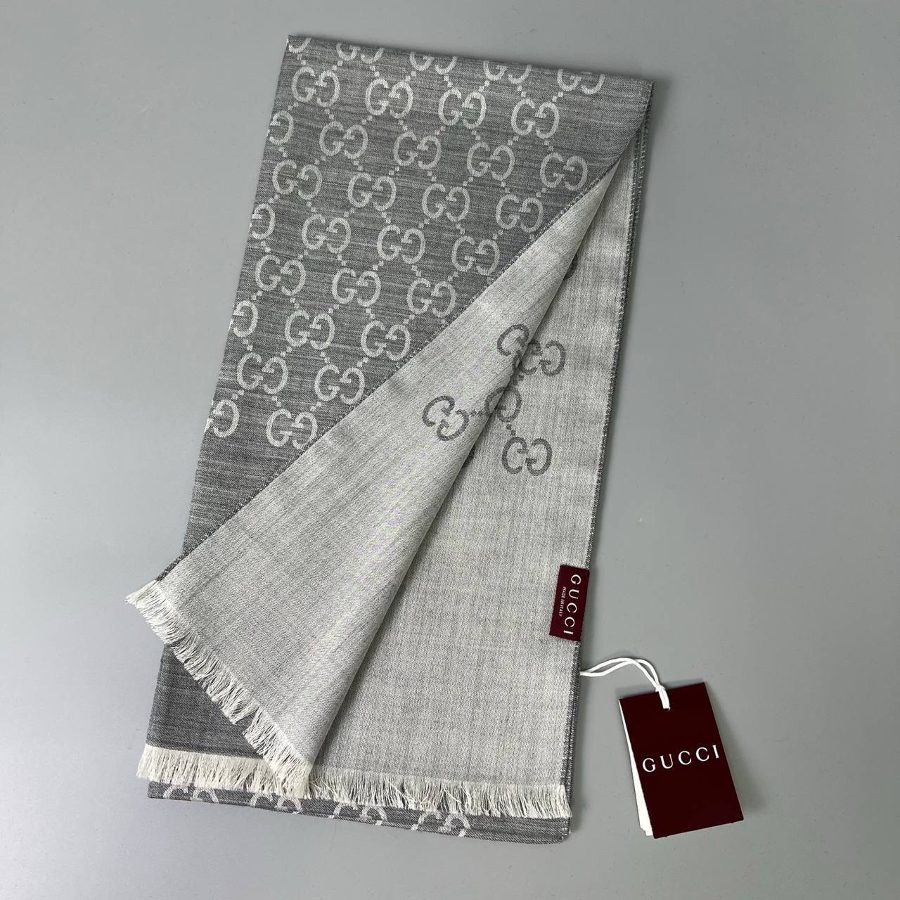 少量現貨‼️‼️GUCCI 雙面薄圍巾 70% WOOL + 30% SILK Size 45x180cm