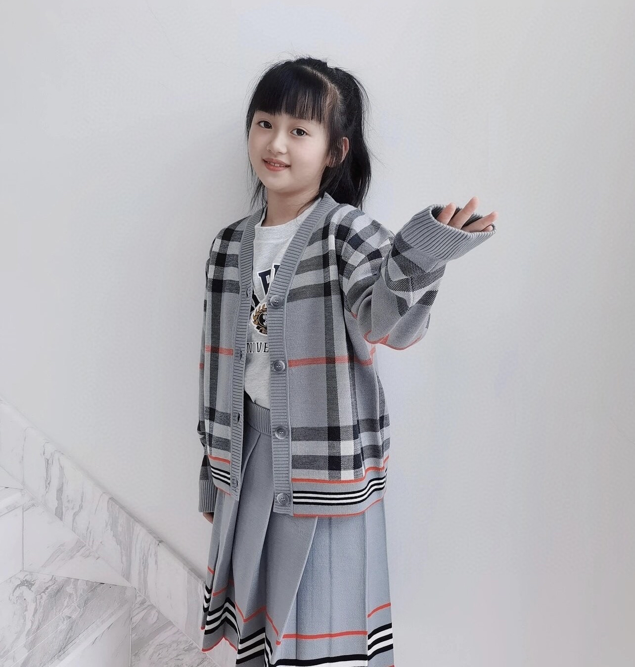 Burberry 灰色格仔針織外套 6Y 8Y 10Y